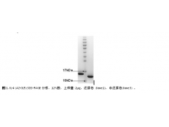 人源IL-4重组蛋白是由大肠杆菌表达,非糖基化修饰,包含131个氨基酸(3-131aa,理论分子量为15.1kDa),通过离子交换和凝胶过滤进行纯化。SDS-PAGE检测其纯度>95%(图1),内毒素残留:LAL检测,小于0.1ng/μg。