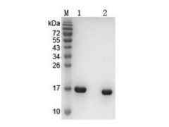 重组人His-IL-22由大肠杆菌表达,非糖基化修饰,含有167个氨基酸(21-154aa,理论分子量为19.04kDa,1-20aa为His标签)。重组蛋白通过Ni-NTA亲和层析及凝胶过滤纯化,SDS-PAGE检测其纯度>95%(图1)。
