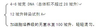 注意:DNA和转染试剂的总体积不要超过40微升。