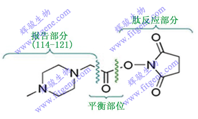 图1:iTRAQ试剂包括三部分:报告部分、肽反应部分、平衡部分。1、报告部分有八种:114-121,因此iTRAQ试剂可同时标记8组样品。2、肽反应部分:能与肽N端及赖氨酸侧链氨基发生共价连接而标记上肽段。3、平衡部分:保证被标记的同一肽段的质荷比相同。