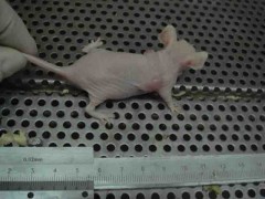 3.食管癌 甲基苄基亚硝胺(MBNA)诱发大鼠食管癌:取体重100g以上的Wistar大鼠,任其食用含甲基苄基亚硝胺的饮水,并将MBNA掺入饲料中使每日摄入量达0.75~1.5mg/kg体重。80~100天可诱发成食管癌。也可用二烃黄樟素(Dihydrosafrole),它是一种制备啤酒的调味品,在大鼠饲料中加入百万分之二千五百至一万(2500~10000ppm)黄樟素,就能引起20~75%的食管癌。用0.2%或0.005%的甲基苄基亚硝胺水溶液,给动物经口灌喂,每天一次,大鼠灌注剂量为1mg/kg体重,至第27天即发现一例食管乳头状瘤,154天发现第一例食管癌,11个月食管癌的发生率为53%。