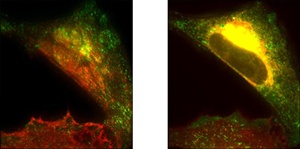 TIRFM技术依赖于斜射光线在两种不同折射率光学介质表面产生的极浅的消逝波。该效应产生的条件是入射介质折射率大于折射介质,并且斜射照射到光学界面时入射角大于全反射临界角。残余的消逝波扩散进入低折射率介质,并且随着扩散深度的增加,光强成指数递减。利用消逝波极浅的穿透性,可以在光学表面100nm以内照明和激发荧光染料,因此几乎完全排除了细胞体内的自发荧光干扰,与传统荧光照明技术相比,极大的改善了图像的信噪比。